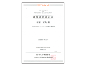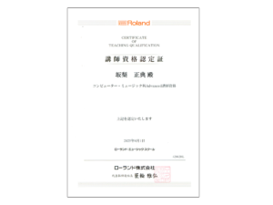 ローランド・ミュージック・スクールのコンピューター・ミュージック科PCミュージック・ベーシックコースおよびPCミュージック・アドバンスコース認定講師。